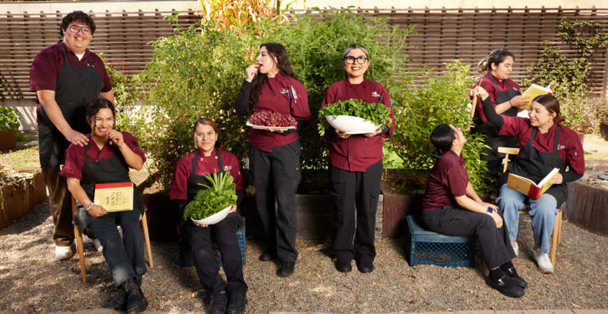 Student employees in UC Merced’s dining centers got an up-close look at the sustainable techniques at a family almond farm and were challenged to create locally sourced dishes as part of a workshop inspired by an internationally famous chef. The workshop was presented by the Alice Waters Institute for Edible Education in collaboration with UC Merced Executive Chefs Anthony Pangelina and Mitchell Vanagten.